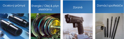 - hydraulické součástky (kulové uzávěry, pneumatické pružiny, šoupátkové ventily, potrubí, pístnice pro hydraulické zvedáky, tlumiče otřesů, trubky, ...)